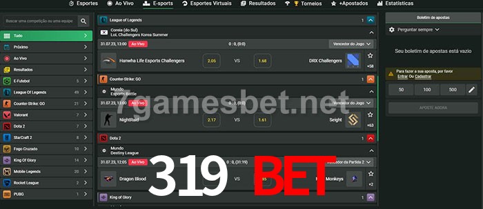 O 319 Bet oferece uma grande seleção de opções de apostas em e-sports com probabilidades competitivas